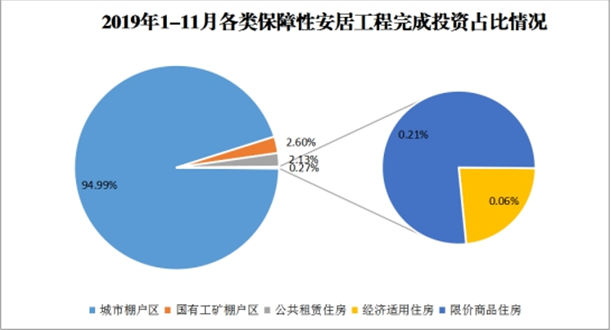 (一)全区保障性安居工程完成投资情况。截至2019年11月25日,全区保障性安居工程完成投资258.5亿元,同比增长20.79%,环比增长16.46%。其中,城市棚户区改造完成投资245.55亿元,国有工矿棚户区改造完成投资6.73亿元,公共租赁住房完成投资5.51亿元,经济适用住房完成投资0.16亿元,限价商品住房完成投资0.54亿元。